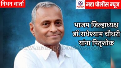 महा पोलीस न्यूज । दि.२ एप्रिल २०२६ । जळगाव जिल्हा भाजपचे जिल्हाध्यक्ष तसेच सृष्टी हॉस्पिटलचे संचालक डॉ. राधेश्याम चौधरी यांचे वडील…