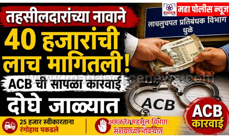 महा पोलीस न्यूज । पंकज शेटे। तहसीलदारांच्या नावाने लाच मागणाऱ्या दोन जणांना लाचलुचपत प्रतिबंधक विभागाने (ACB) सापळा रचून रंगेहाथ पकडले. या कारवाईमुळे महसूल विभागासह जिल्ह्यात मोठी खळबळ उडाली आहे. दरम्यान, लाच दोघे स्वतःसाठी मागत होते की महसूल विभागाचे काही लागेबांधे आहेत याचा शोध घेणे महत्वाचे आहे.