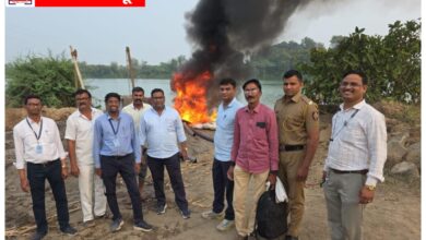 गिरड व मांडकी गिरणा पत्रात वाळुचा उपसा करणारी बोट जाळुन नष्ट महसुल विभागाची कार्यवाही