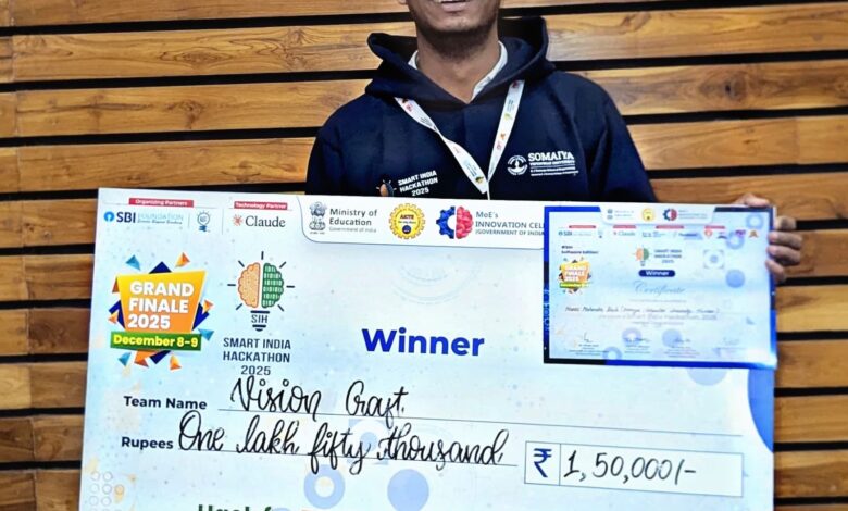 मानस महेंद्र भोळे यांच्या नेतृत्वाखाली महाराष्ट्रातील ‘Team Visioncraft’ या संघाने Real-Time AI/ML-Based Phishing Detection and Prevention System या प्रॉब्लेम स्टेटमेंटमध्ये उत्कृष्ट उपाय सादर करत विजेतेपद पटकावले.