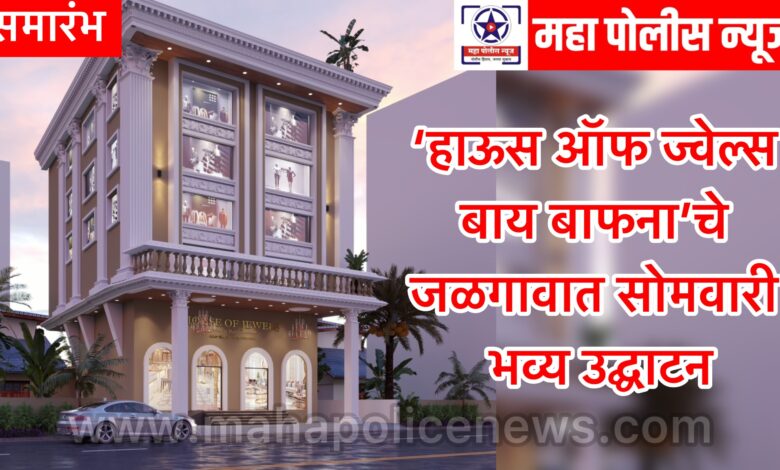 महा पोलीस न्यूज । चेतन वाणी । जळगाव शहरातील रिंग रोडवरील ‘हाऊस ऑफ ज्वेल्स बाय बाफना’ आता अधिक भव्य स्वरूपात ग्राहकांच्या सेवेत येत आहे. सोमवार, २२ सप्टेंबर रोजी नवरात्रोत्सवाच्या पहिल्या दिवशी, घटस्थापनेच्या शुभ मुहूर्तावर या नव्या शोरूमचे उद्घाटन होणार आहे. या सोहळ्यासाठी राजकारण आणि सामाजिक क्षेत्रातील अनेक मान्यवर उपस्थित राहणार आहेत.