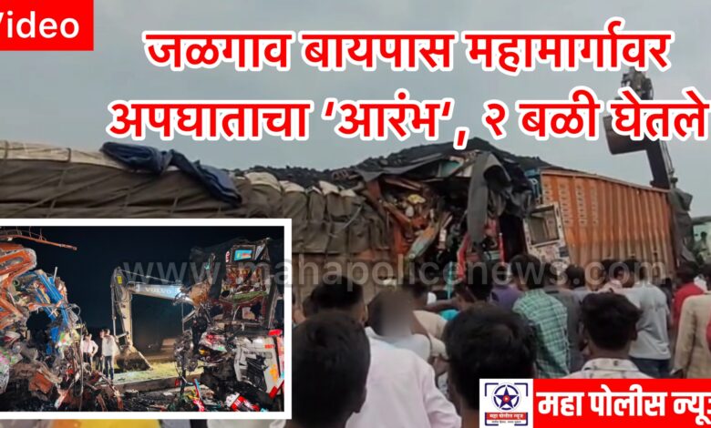 महा पोलीस न्यूज । चेतन वाणी । जळगाव शहराजवळील पाळधी ते तरसोद दरम्यानच्या नवीन राष्ट्रीय महामार्गावर बुधवार, २७ ऑगस्ट २०२५ रोजी दुपारी साडेचार वाजता दोन मालवाहू ट्रकच्या समोरासमोर धडकेमुळे भीषण अपघात झाला. या दुर्घटनेत दोन ट्रकचालकांचा मृत्यू झाला, तर दोन जण गंभीर जखमी झाले. अपघात इतका भीषण होता की, बचावकार्यासाठी जेसीबी आणि क्रेनचा वापर करावा लागला.