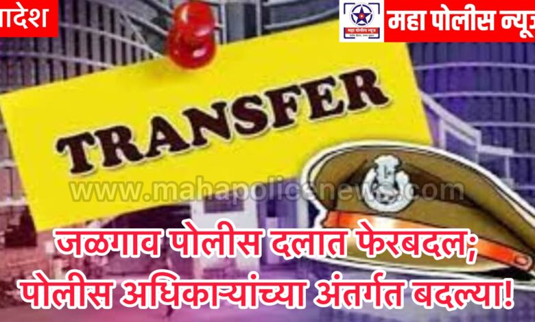 ब्रेकिंग : जळगाव पोलीस दलात फेरबदल; तीन पोलीस अधिकाऱ्यांच्या अंतर्गत बदल्या!