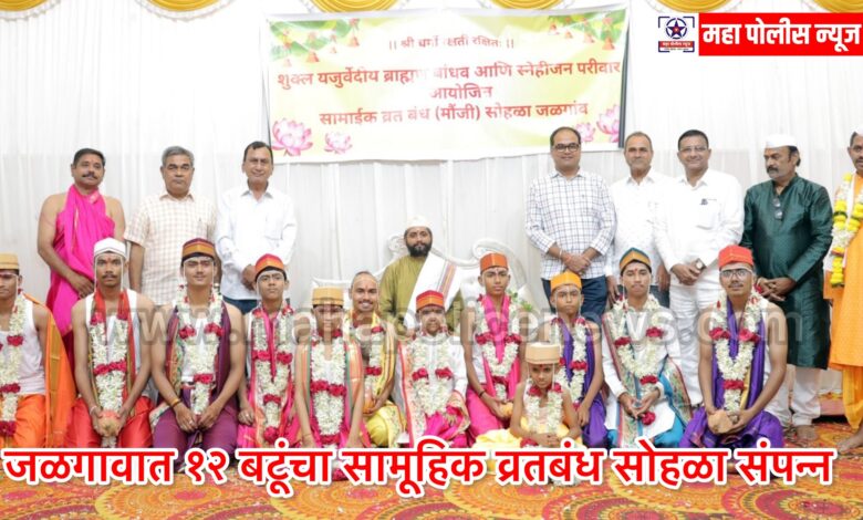 महा पोलीस न्यूज । चेतन वाणी । जळगाव येथील शुक्ल यजुर्वेदीय ब्राह्मण बांधव व स्नेहीजन परिवारातर्फे १२ बटूंचा सामुदायिक व्रतबंध सोहळा नुकताच उत्साहपूर्ण वातावरणात संपन्न झाला.