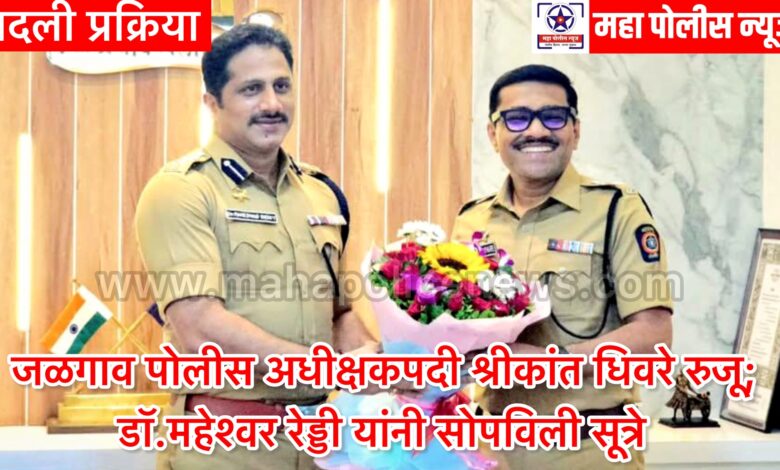 जळगाव जिल्हा पोलीस अधीक्षकपदी श्रीकांत धिवरे रुजू; डॉ. महेश्वर रेड्डी यांनी सोपविली सूत्रे