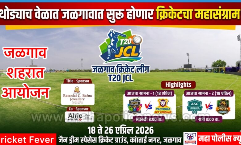 महा पोलीस न्यूज । चेतन वाणी । जळगाव शहरात क्रिकेटचे वारे वाहू लागले असून खेळाडू आणि क्रीडाप्रेमींचा उत्साह आता प्रत्यक्ष मैदानावर अनुभवायला मिळणार आहे. स्थानिक खेळाडूंच्या प्रतिभेला वाव देण्यासाठी आयोजित करण्यात आलेल्या ‘जळगाव क्रिकेट लीग-२०२६’ (JCL) या भव्य स्पर्धेचा थरार १८ ते २६ एप्रिल दरम्यान रंगणार आहे. मेहरूण परिसरातील कांताई नगर येथील जैन ड्रीम स्पेसेसच्या आंतरराष्ट्रीय दर्जाच्या क्रीडांगणावर हा क्रिकेटचा महाकुंभ आयोजित करण्यात आला असून, शनिवारी १८ एप्रिल रोजी सायंकाळी या स्पर्धेचा दिमाखदार उद्घाटन सोहळा संपन्न होईल.