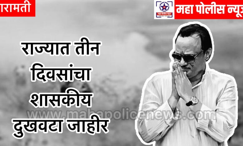 महा पोलीस न्यूज । चेतन वाणी । महाराष्ट्र राज्याचे उपमुख्यमंत्री अजित अनंतराव पवार यांचे आज, २८ जानेवारी २०२६ रोजी दुःखद निधन झाले आहे. त्यांच्या निधनामुळे संपूर्ण राज्यावर शोककळा पसरली असून राज्य शासनाने अधिकृतपणे तीन दिवसांचा शासकीय दुखवटा जाहीर केला आहे. या संदर्भात सामान्य प्रशासन विभागाने (मंत्रालय) तातडीचे परिपत्रक काढून महत्त्वाचे निर्णय जाहीर केले आहेत.