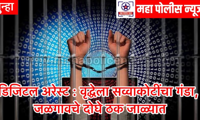 महा पोलीस न्यूज । चेतन वाणी । सायबर गुन्हेगारांच्या धाडसी कारनाम्याने पुन्हा एकदा नागरिक हादरले आहेत. “डिजिटल अरेस्ट” नावाचा बोगस तुरुंग तयार करून ७२ वर्षीय वृद्धेला तब्बल सव्वाकोटी रुपयांचा गंडा घालण्यात आला. या आधुनिक ठकसेनांना मुंबई सायबर पोलिसांनी जळगावातून जेरबंद केले असून रोहित संजय सोनार आणि हितेश पाटील अशी दोघांची नावे आहेत.