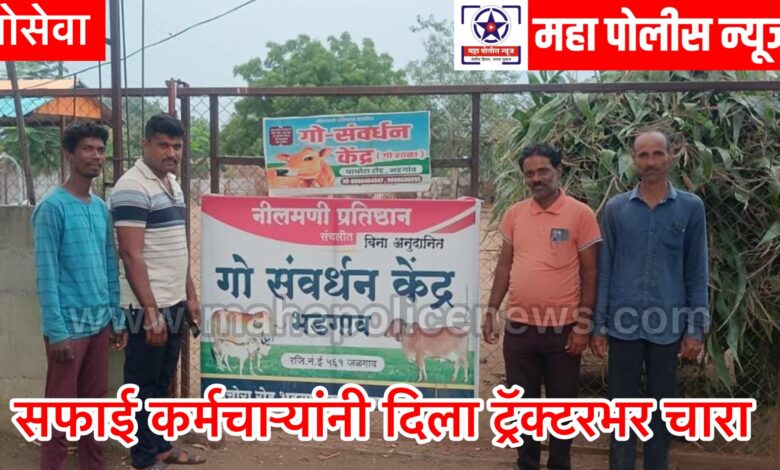 महा पोलीस न्यूज । विजय माळी । भडगाव शहरातील पाचोरा रस्त्यावरील नीलमणी प्रतिष्ठानद्वारे संचालित गो संवर्धन केंद्राला भडगाव नगर परिषदेच्या सफाई कर्मचाऱ्यांनी एक ट्रॅक्टर मक्याचा हिरवा चारा दान केला आहे. हे गो संवर्धन केंद्र अनुदानाविना चालविले जाते आणि स्वखर्चाने त्याचा खर्च भागविला जातो.
