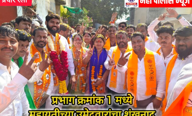 जळगाव: जळगाव शहर महानगरपालिका सार्वत्रिक निवडणूक २०२६ चा बिगुल वाजला असून, प्रभाग क्रमांक १ मध्ये ‘महायुती’च्या अधिकृत उमेदवारांनी प्रचारात मोठी आघाडी घेतली आहे. “प्रभाग क्र. १ चा विकास हाच आमचा ध्यास” हे ब्रीदवाक्य घेऊन महायुतीचे शिलेदार मतदारांच्या गाठीभेटी घेत आहेत. जळगाव शहराचा चेहरामोहरा बदलण्यासाठी आणि शाश्वत विकासासाठी महायुतीच्या उमेदवारांना विजयी करण्याचे आवाहन यावेळी करण्यात आले आहे.