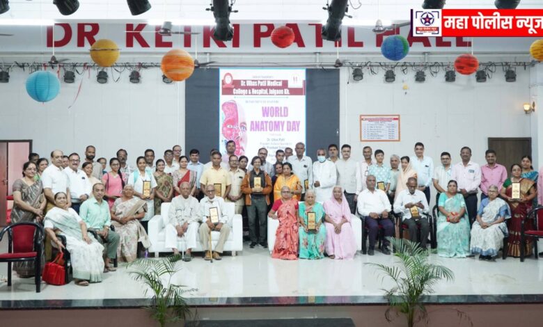 डॉ. उल्हास पाटील वैद्यकीय महाविद्यालयाच्या अॅनाटॉमी विभागातर्फे जागतिक शरीररचना शास्त्र दिनानिमीत्त देहदान करणार्या व्यक्तींच्या कुटूंबातील सदस्यांच्या सन्मान सोहळ्याचे आयोजन करण्यात आले होते. याप्रसंगी प्रमुख पाहुणे म्हणून ते बोलत होते. यावेळी व्यासपीठावर वैद्यकीय महाविद्यालयाचे अधीष्ठाता डॉ. प्रशांत सोळंके, डीएम कार्डीओलॉजीस्ट डॉ. वैभव पाटील, रजीस्ट्रार प्रमोद भिरूड, होमीओपॅथी महाविद्यालयाचे प्राचार्य डॉ. राकेश मिश्रा, फिजीओथेरेपी महाविद्यालयाचे प्राचार्य डॉ. जयवंत नागुलकर, आयुर्वेद महाविद्यालयाचे डॉ. उमाकांत चौधरी, रूग्णालयाचे वैद्यकीय अधीक्षक डॉ. प्रेमचंद पंडीत, सीईओ डॉ. विजय बाविस्कर, अॅनाटॉमी विभागाच्या प्रमुख डॉ. शुभांगी वाघ हे उपस्थित होते. कार्यक्रमाच्या सुरूवातीला मान्यवरांच्या हस्ते सरस्वती पूजन आणि स्व. गोदावरी आजी यांच्या प्रतिमेला माल्यार्पण करण्यात आले. माजी खा. डॉ. उल्हास पाटील पुढे म्हणाले की, जन्म आणि मृत्यू हे अंतीम सत्य आहे. देहदान करणार्या आप्तेष्टांच्या माध्यमातून ज्ञानदानाचे उपकार होत आहेत. शरीररचना शास्त्र हा वैद्यकीय अभ्यासक्रमाचा पाया ्रआहे. हा पाया रचणार्या तुम्हा सर्वांच्या ऋणात आम्ही राहू इच्छितो असे त्यांनी सांगितले. तसेच डॉ. उल्हास पाटील वैद्यकीय महाविद्यालयात नेत्रदानासाठी प्रस्ताव दाखल करण्यात आल्याचेही त्यांनी सांगितले. देहदानाचे समाजदूत म्हणून तुमचे कार्य प्रेरणादायी असल्याचेही डॉ. उल्हास पाटील यांनी सांगितले. याप्रसंगी सुरेंद्र चौधरी, विनायक पाचपांडे, सुधाकर मोरे, चंद्रभागाताई यांनी मनोगत व्यक्त केले. कार्यक्रमाचे सूत्रसंचालन सुयश देशपांडे आणि पायल पाटील यांनी केले. तसेच यावेळी अॅनाटॉमी विभागातील देहदानाच्या प्रक्रियेत मोलाची भूमिका बजावणार्या स्टाफचाही सन्मान करण्यात आला.