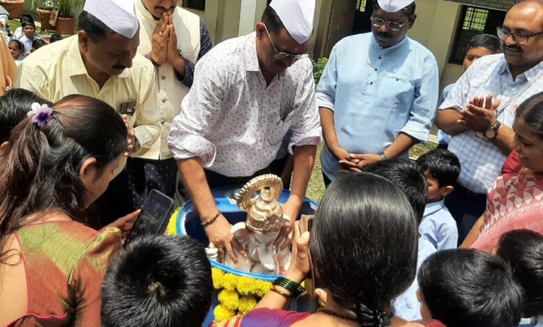 ढोल-ताशांच्या गजरात बाप्पाच्या मूर्तीची मिरवणूक काढण्यात आली. यावेळी विद्यार्थ्यांना इको-फ्रेंडली गणपतीचे महत्त्व समजावून सांगण्यात आले.